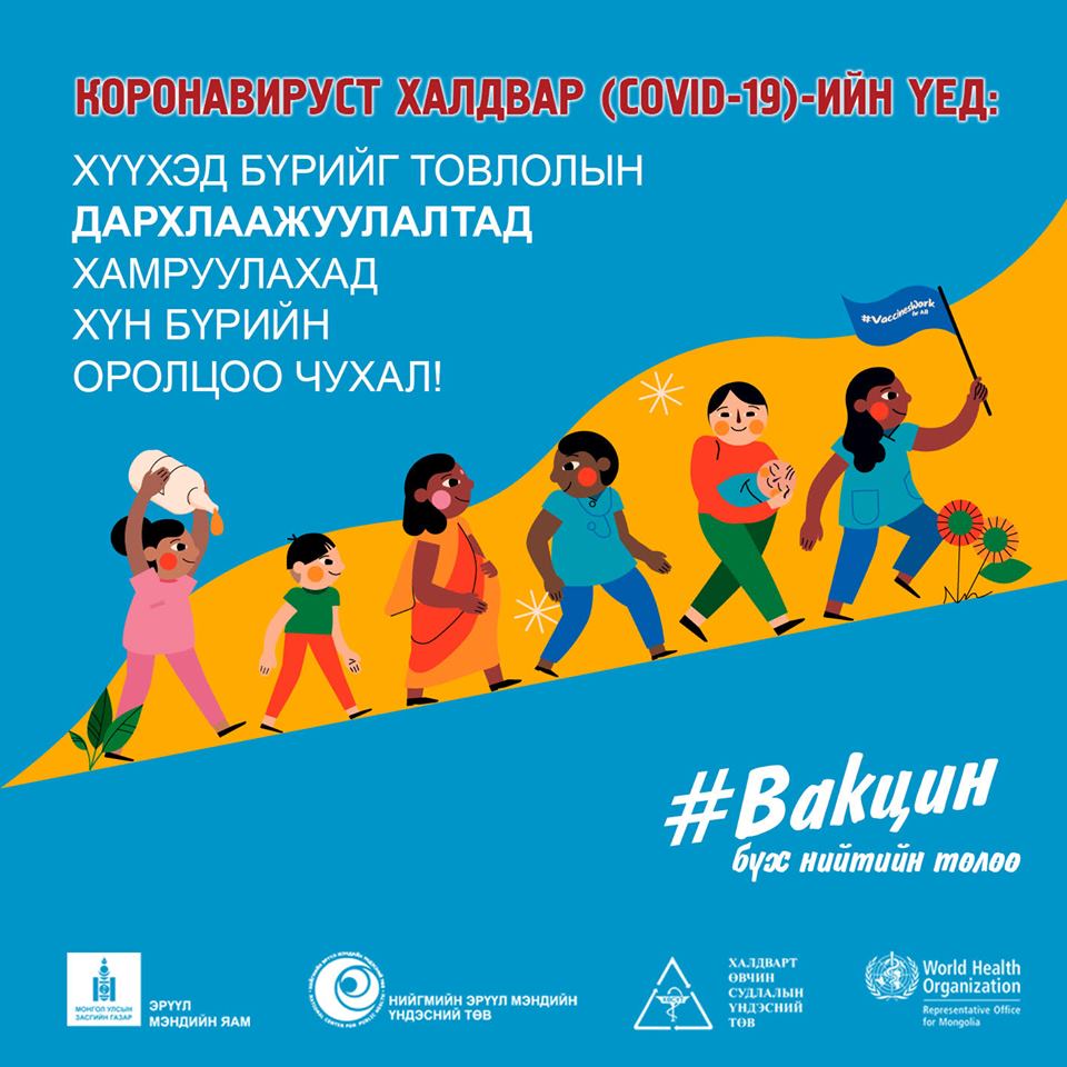 Ковид-19 цар тахлын үед ч товлолын дархлаажуулалтаас хүүхэд бүрийг хоцроолгүй хамруулахад хүн бүрийн оролцоо чухал.